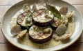 - 仕上げに三つ葉を散らし、黄柚子の皮をかける。