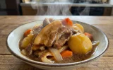 • 蓋を取って火を強め、とろみがつくまで煮つめ、塩、こしょうで味を調えて器に盛る。
