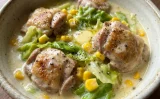 • 水、鶏ガラスープの素、しょうゆ、オイスターソース、牛乳を加えてひと煮立ちさせる
