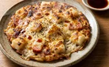 - 3の火を止めてチーズを加えて蓋をし、塩で味を調え、器に盛る。